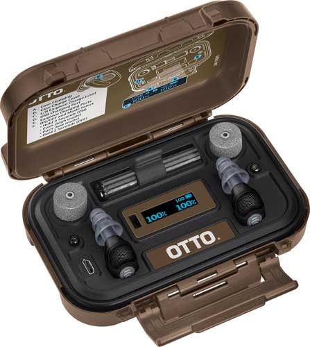 Other Features: 40 db of noise protection amplifies up to 5x natural hearing for range comm assortment of ear tips filter tool and filters one button touch pad-2 mode rechargeable w/ up to 16 hrs of continuous use earplugs store and charge in case