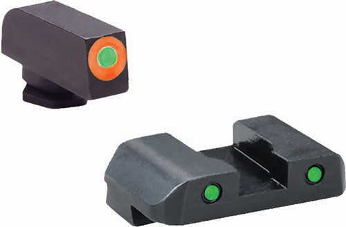 Other Features: Front and rear set, fits glock 17, 19, gen 5 model green tritium front and rear, orange front outline, black rear outline