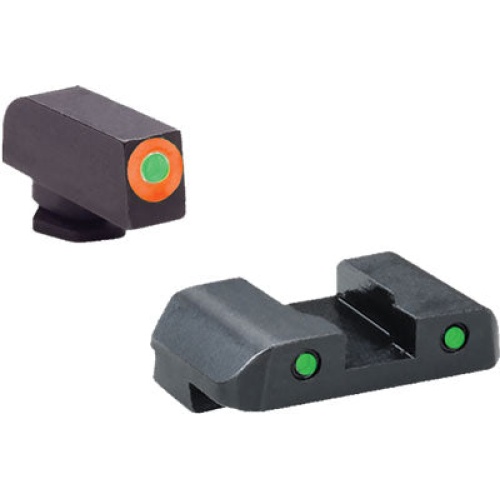 Other Features: Front and rear set, fits glock 17, 19, 22, 23, 24, 26, 27, 33, 34, 35, 37, 38, 39 green tritium front and rear, orange front outline, black rear outline