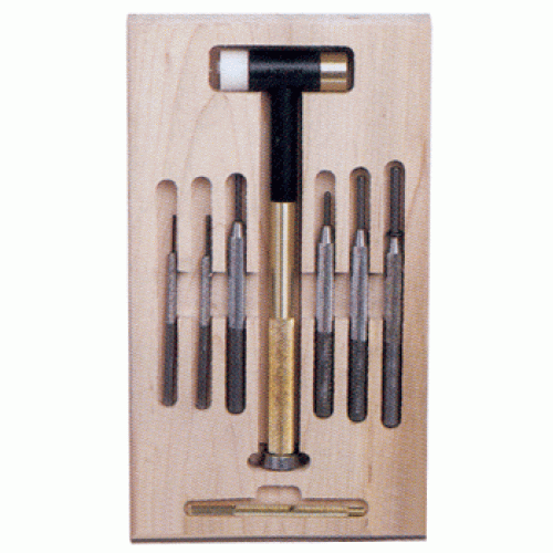 Other Features: Complete selection of punches plus the brass tapper hammer 1/16",3/32",1/8",5/32",3/16" hardwood case separates each punch by size for quick access